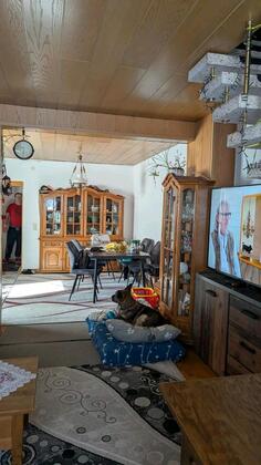 Familienhaus zu vermieten! 4 Zimmer, Küche, Bad. Oben sind 2 Zimmer mit Terrasse und WC, unten sind 2 Zimmer, möblierte Küche, Bad & Terrasse und mit getrenntem Gäste WC, Garage... mehr erfahren