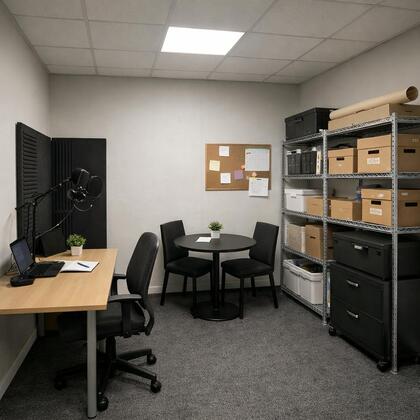 Beschreibung: Der Raum eignet sich ideal als Podcast-Studio, Mini-Büro, Arbeitsraum, Content-Studio oder kleines Office für Einzelpersonen sowie als Lager. Besonders interessant für... mehr erfahren